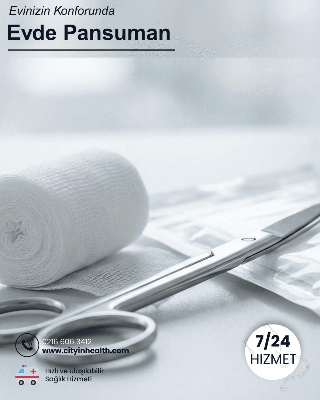 Ameliyat sonrası yara bakımı, kronik yara tedavisi, diyabetik ayak bakımı ve pansuman hizmetleri.